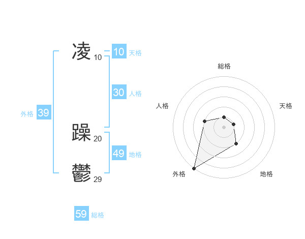 凌 躁鬱さんの総格は59画の1点!