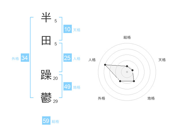 半田 躁鬱さんの総格は59画の1点!