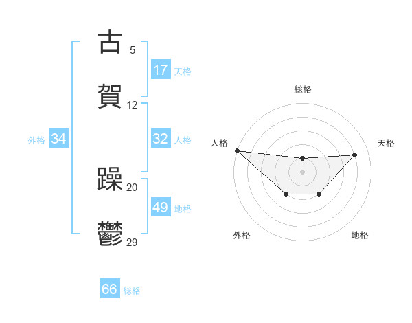 古賀 躁鬱さんを姓名の画数から五運を鑑定