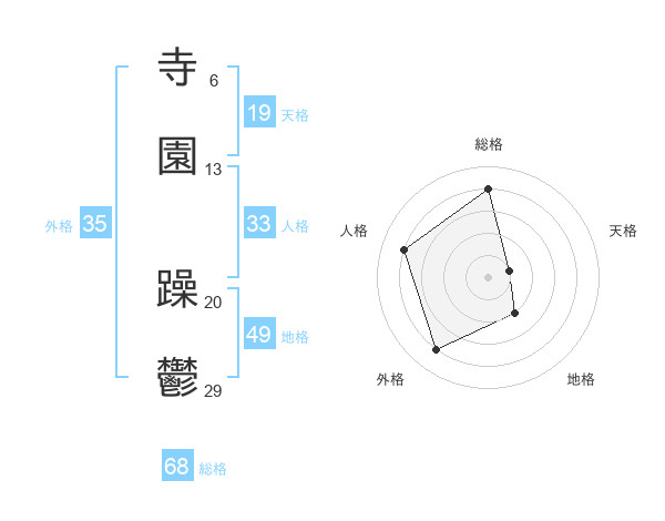 寺園 躁鬱さんの総格は68画の4点!