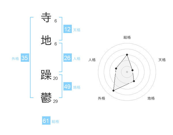 寺地 躁鬱さんの総格は61画の3点!
