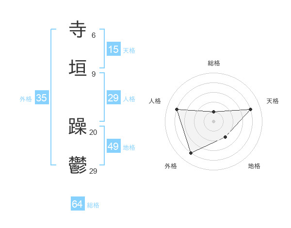 寺垣 躁鬱さんの地格は49画の2点!