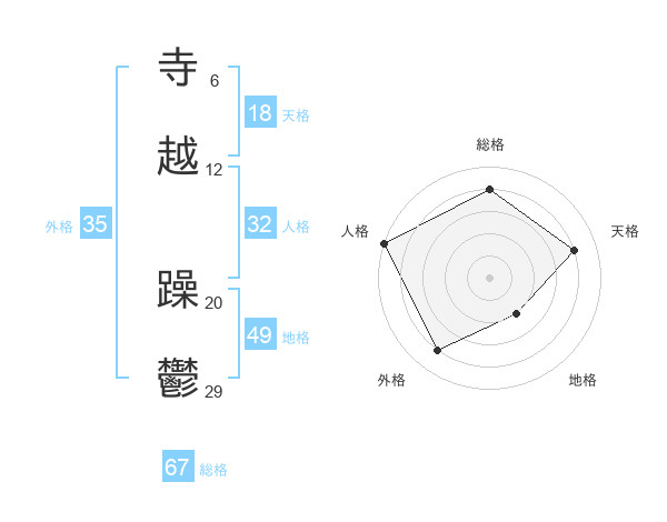 寺越 躁鬱さんの地格は49画の2点!