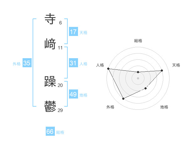 寺﨑 躁鬱さんを姓名の画数から五運を鑑定