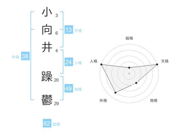 小向井 躁鬱さんの総格は62画の1点!