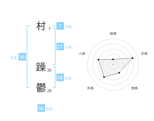 村 躁鬱さんの総格は56画の1点!