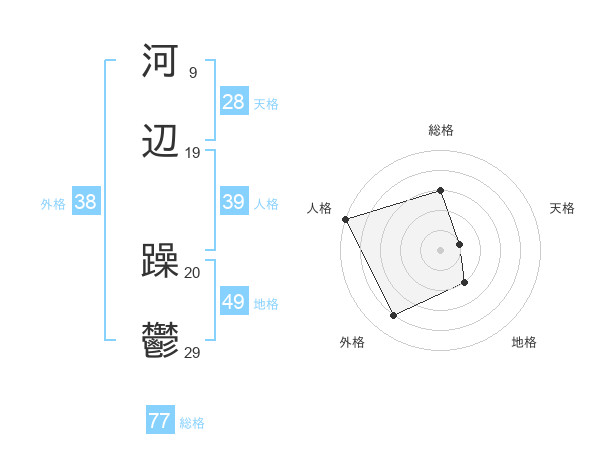河辺 躁鬱さんの総格は77画の3点!