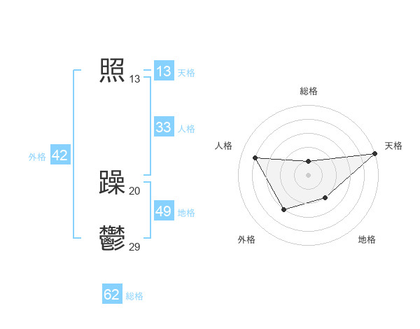 照 躁鬱さんの天格は13画の5点!
