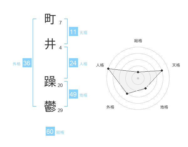 町井 躁鬱さんを姓名の画数から五運を鑑定