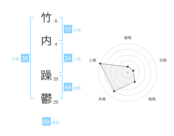 竹内 躁鬱さんを姓名の画数から五運を鑑定