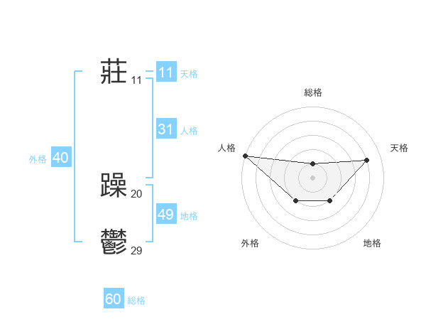 莊 躁鬱さんの天格は11画の4点!