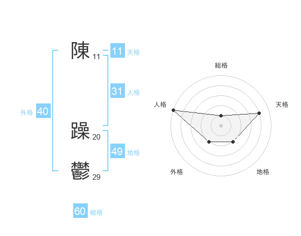 陳 躁鬱さんの人格は31画の5点!