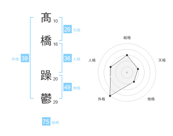 髙橋 躁鬱さんの総格は75画の3点!