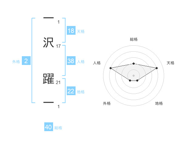 一沢 躍一さんを姓名の画数から五運を鑑定