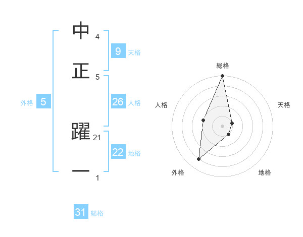 中正 躍一さんの総格は31画の5点!