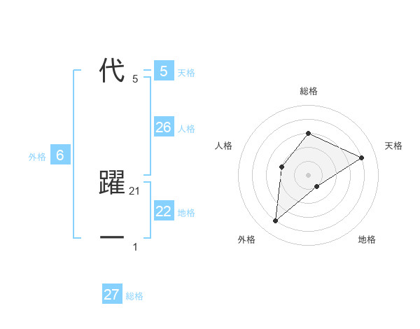 代 躍一さんの総格は27画の3点!