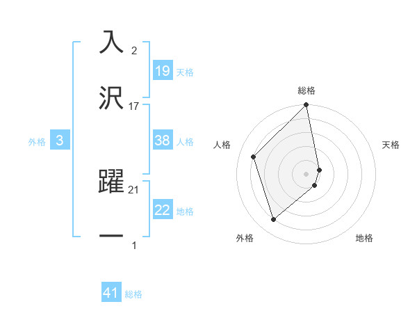 入沢 躍一さんの総格は41画の5点!
