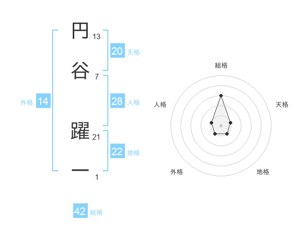 円谷 躍一さんを姓名の画数から五運を鑑定