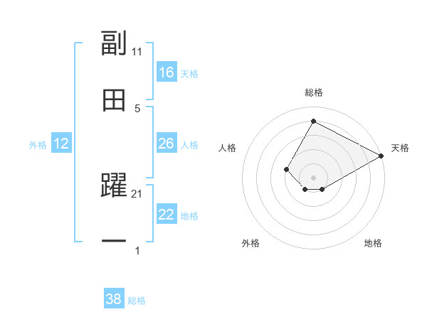 副田 躍一さんの総格は38画の4点!