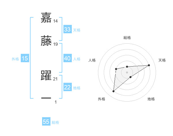 嘉藤 躍一さんを姓名の画数から五運を鑑定