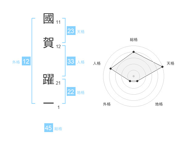 國賀 躍一さんの総格は45画の4点!