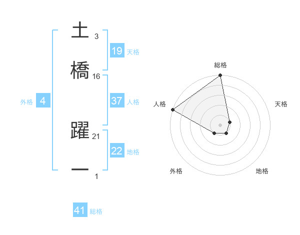 土橋 躍一さんの地格は22画の1点!