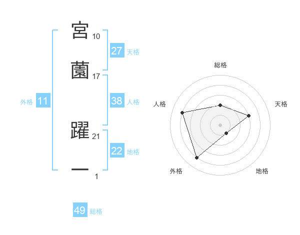 宮薗 躍一さんの地格は22画の1点!