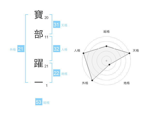 寶部 躍一さんの総格は53画の3点!