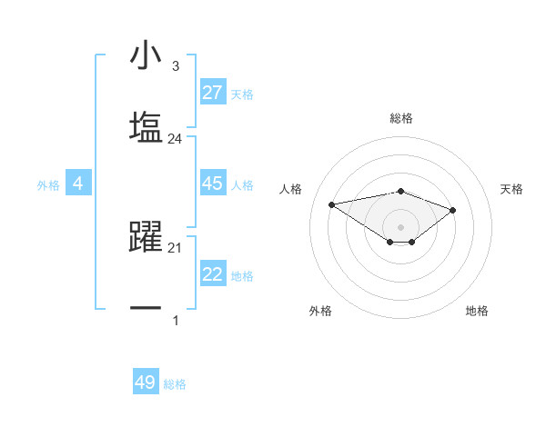 小塩 躍一さんを姓名の画数から五運を鑑定