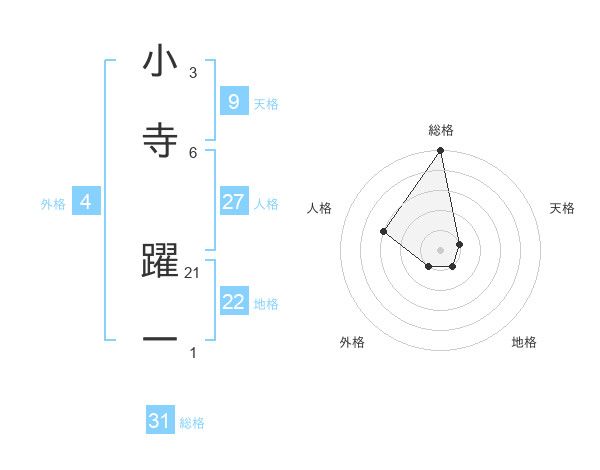 小寺 躍一さんを姓名の画数から五運を鑑定