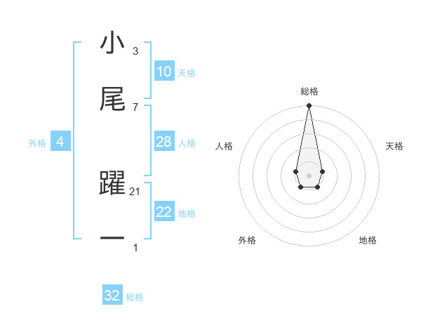 小尾 躍一さんの総格は32画の5点!