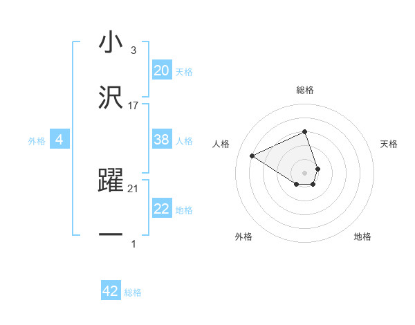 小沢 躍一さんを姓名の画数から五運を鑑定