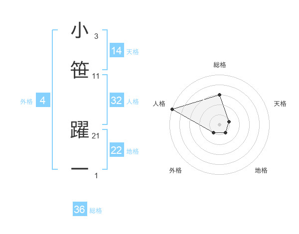 小笹 躍一さんの天格は14画の1点!