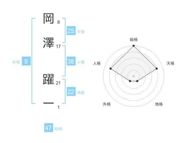 岡澤 躍一さんの総格は47画の5点!