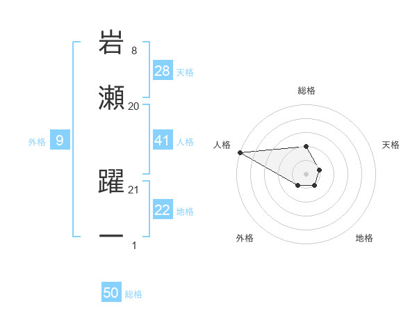 岩瀬 躍一さんの総格は50画の2点!