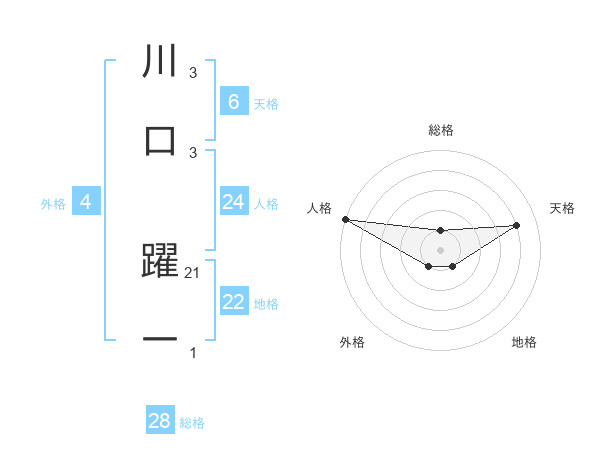 川口 躍一さんの人格は24画の5点!
