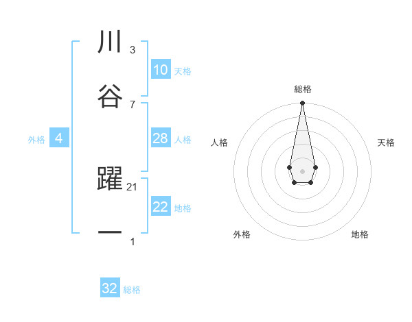 川谷 躍一さんの総格は32画の5点!