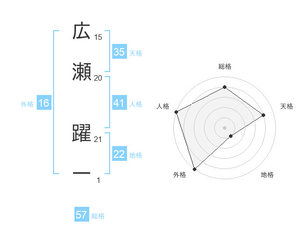 広瀬 躍一さんの総格は57画の4点!