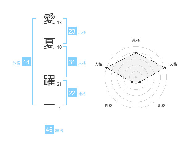愛夏 躍一さんの天格は23画の5点!
