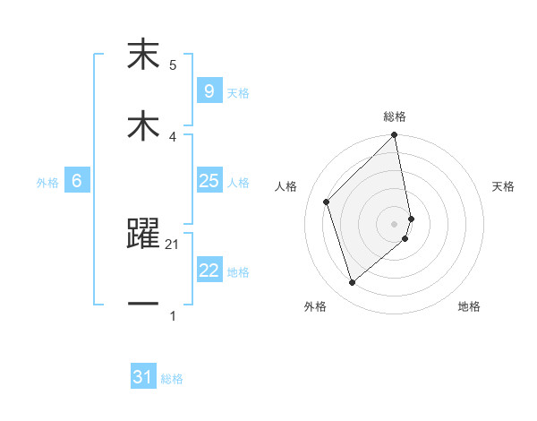 末木 躍一さんの総格は31画の5点!