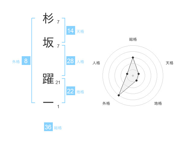 杉坂 躍一さんを姓名の画数から五運を鑑定
