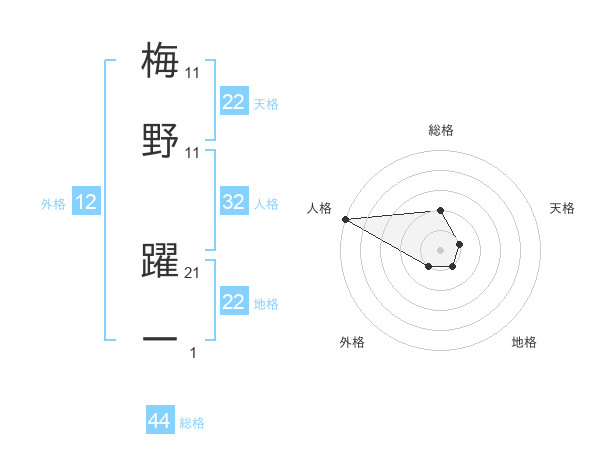 梅野 躍一さんの総格は44画の2点!