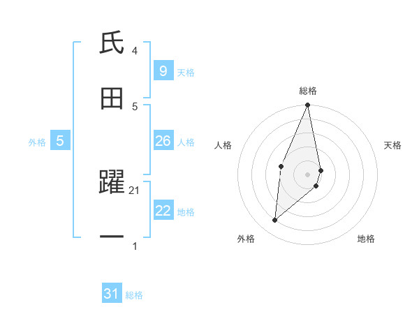 氏田 躍一さんの総格は31画の5点!