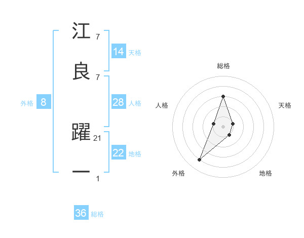 江良 躍一さんの天格は14画の1点!