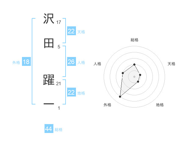 沢田 躍一さんの総格は44画の2点!