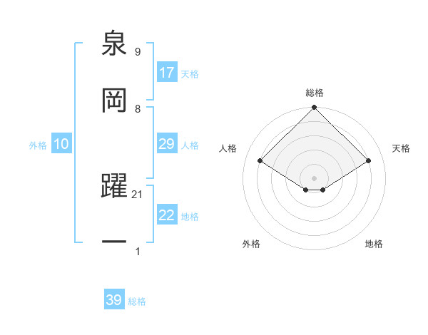 泉岡 躍一さんの総格は39画の5点!