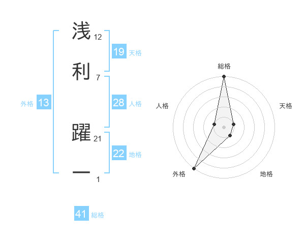 浅利 躍一さんを姓名の画数から五運を鑑定