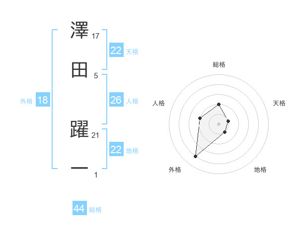 澤田 躍一さんの天格は22画の1点!