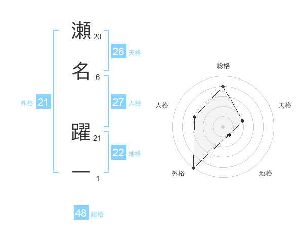 瀬名 躍一さんの外格は21画の5点!