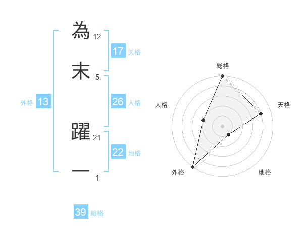 為末 躍一さんの外格は13画の5点!